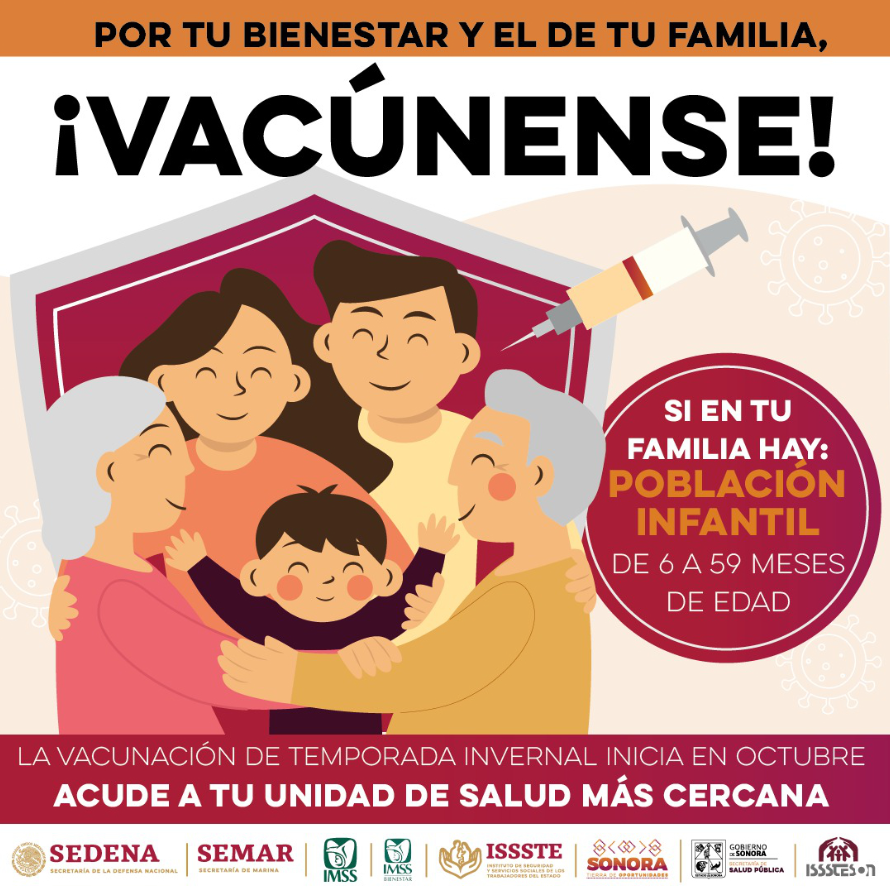 La SecretarÃa de Salud del Gobierno de Sonora exhorta a la ciudadanÃa a vacunarse contra la influenza y el Covid-19 durante esta temporada invernal. Estas vacunas son clave para prevenir formas graves de estas enfermedades.