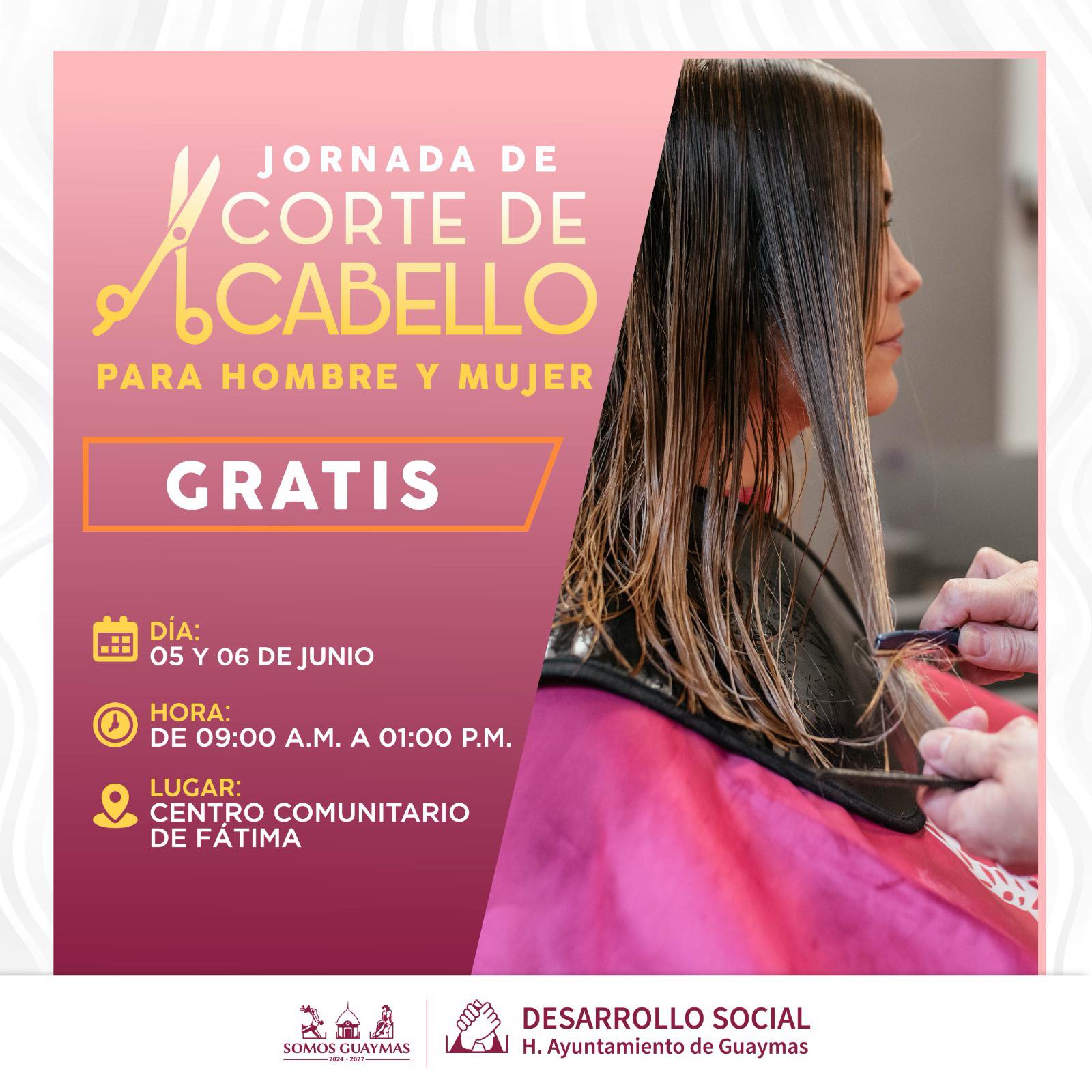 El Ayuntamiento de Guaymas, a travÃs de la DirecciÃn de Desarrollo Social, invita a la ciudadanÃa a participar en la Jornada de Corte de Cabello gratuito para hombres y mujeres, que se llevarà a cabo los dÃas 5 y 6 de junio, en un horario de 09:00 a.m. a 1:00 p.m.