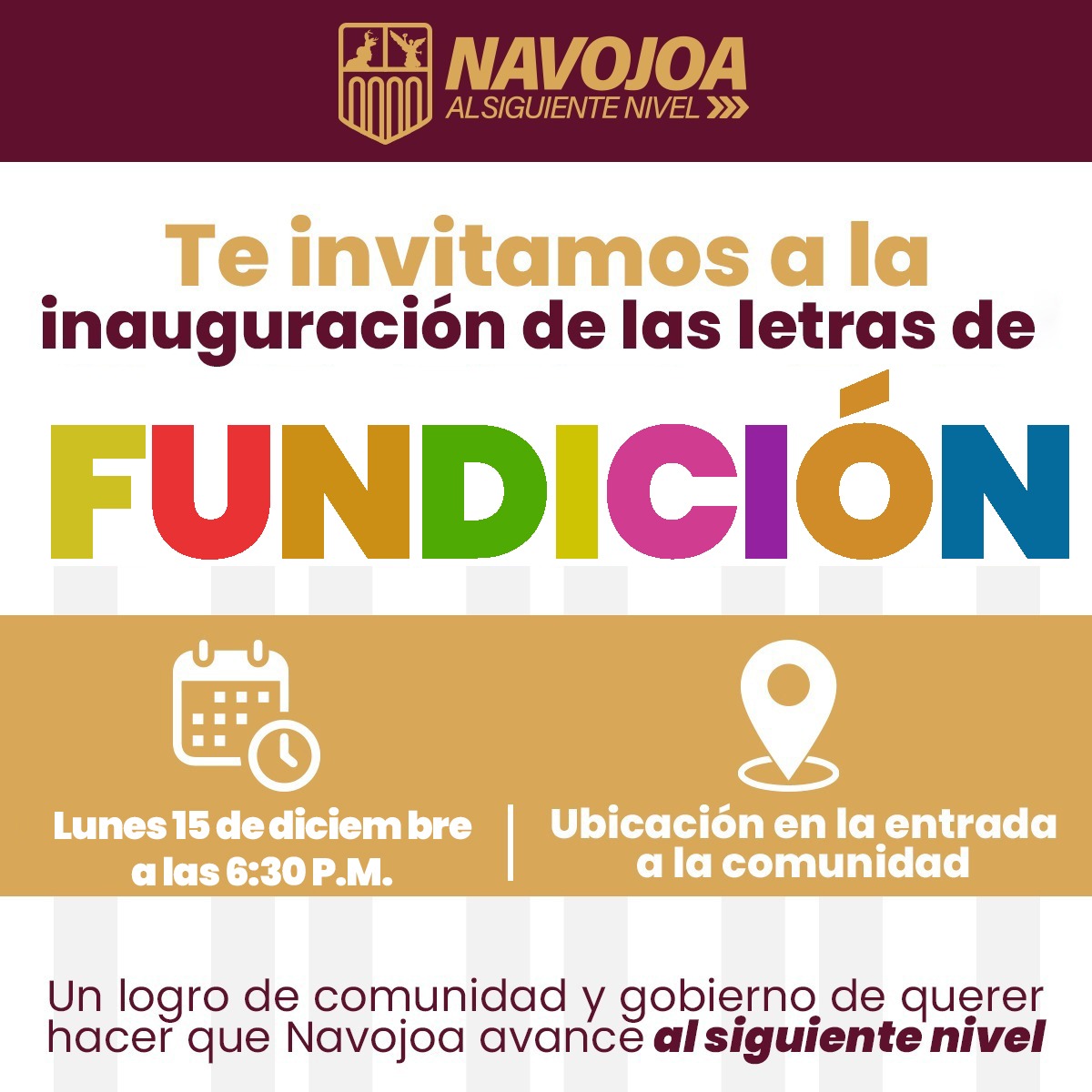 Navojoa, Sonora â 15 de diciembre de 2025.– La comunidad de FundiciÃn tendrà a partir de hoy un nuevo rostro para recibir a visitantes y locales. El Ayuntamiento de Navojoa invita a la ciudadanÃa a la gran inauguraciÃn de las letras emblemÃticas de la localidad.