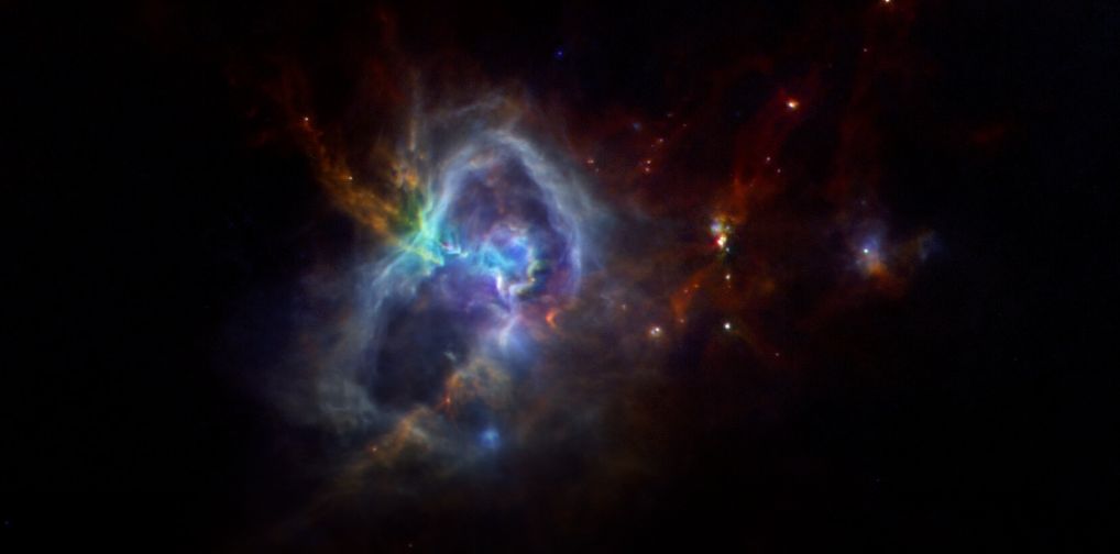 Gracias a su cÃmara VIRCAM, VISTA es capaz de observar longitudes de onda infrarrojas, lo que le permite atravesar el polvo cÃsmico y mostrar las estrellas frÃas y enanas marrones que son difÃciles de observar en luz visible. La intensa radiaciÃn de las estrellas reciÃn nacidas ilumina el gas circundante, creando los caracterÃsticos tonos rosados de la imagen.
