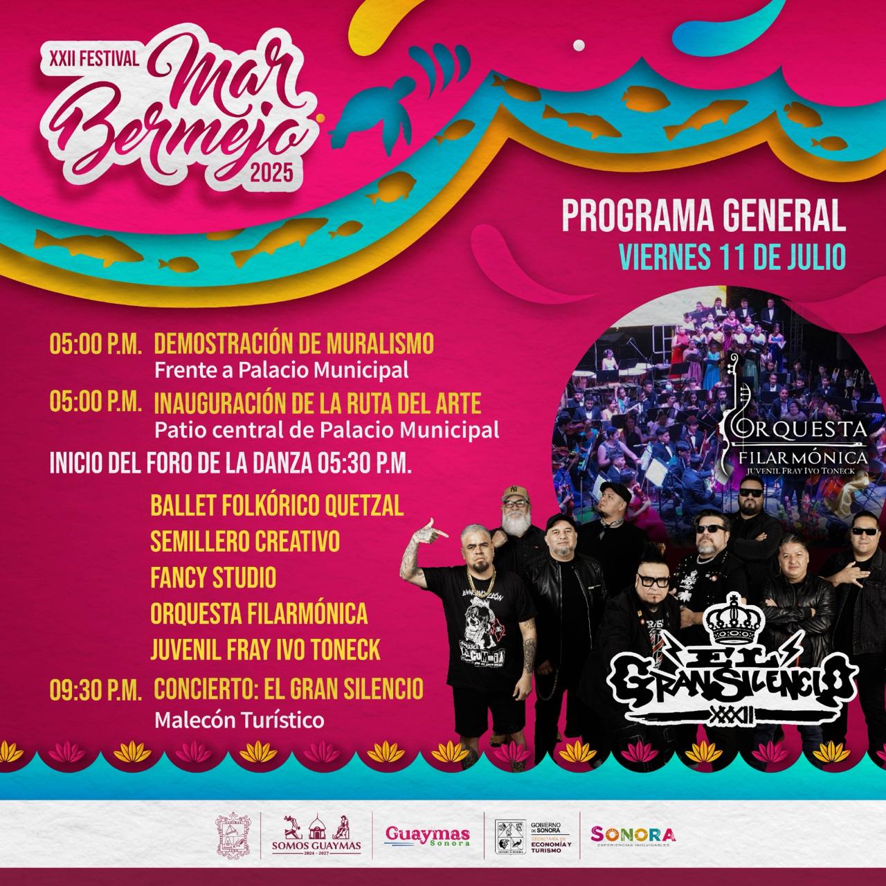 Inicia el XXII Festival Mar Bermejo 2025 en GuaymasEl H. Ayuntamiento de Guaymas 2024â2027 te invita a disfrutar en familia de una tarde llena de arte, cultura y mÃsica este viernes 11 de julio, durante el primer dÃa de actividades del esperado Festival Mar Bermejo 2025.ððð