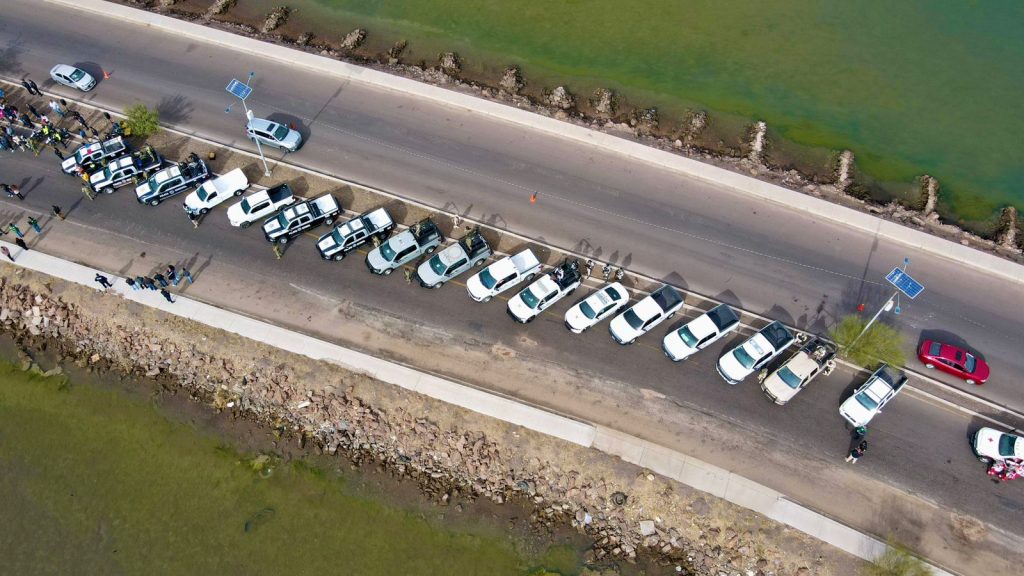 En este arranque estuvieron presentes Flavio Calca Santos, Teniente de InfanterÃa, en representaciÃn del Comandante de la Sexta Zona Militar, Felipe GonzÃlez Moreno; Marco Antonio Romero FÃlix, Comandante del BatallÃn de InfanterÃa de Marina nÃmero 8, en representaciÃn del Comandante de la Sexta RegiÃn Naval, Daniel Escobedo Escobedo; Julio CÃsar Cruz Gallegos, Comisario de Seguridad PÃblica y TrÃnsito Municipal de Guaymas; Francisco Leonardo Osorio Ayala, Jefe de SeÃalamiento MarÃtimo, en representaciÃn del CapitÃn del Puerto, Manuel Torres GarcÃa; Marcos Alejandro Preciado Valenzuela, encargado de la base operativa de Seguridad PÃblica Estatal; Luis Eduardo Moreno Morales, Segundo Inspector Comandante de la CompaÃÃa 448 de la Guardia Nacional; Ana Karen Villaverde, titular de la EstaciÃn de VÃas de ComunicaciÃn de la Guardia Nacional; Luis Ãngel Flores Estrada, Comisario de Seguridad PÃblica de Empalme; y funcionarios.