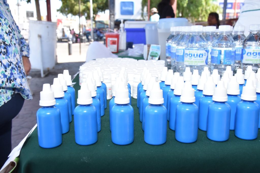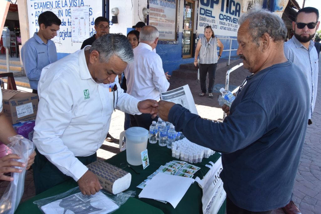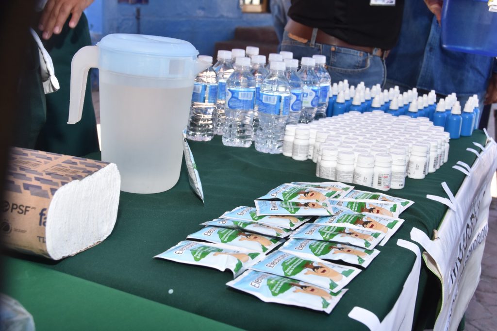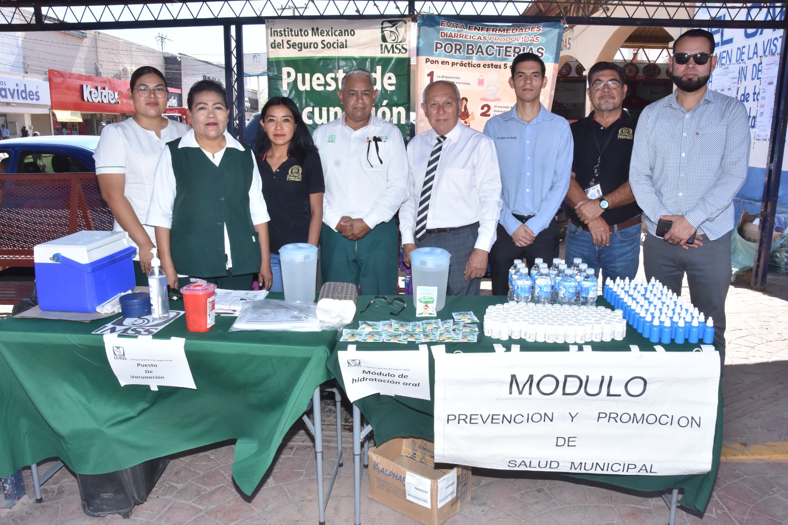 Enfermeras del IMSS y personal de Salud atendieron desde el comienzo de la jornada a los transeÃntes, proporcionÃndoles sobres de suero Vida Oral, dosis de albendazol como desparasitante, plata coloidal para desinfecciÃn de agua, frutas y verduras, y folletos ilustrativos.
