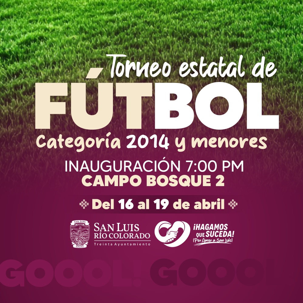 San Luis Río Colorado, Sonora (Abril 10 de 2026).- Como parte del compromiso con el fomento del deporte y el sano desarrollo de la juventud sanluisina, el 30 Ayuntamiento a través de la Dirección del Deporte Municipal, llevará a cabo el Torneo Estatal de Fútbol en la categoría 2014 y menores, un evento que reunirá a equipos de distintos municipios del estado en un ambiente de sana convivencia, competencia y entusiasmo deportivo.