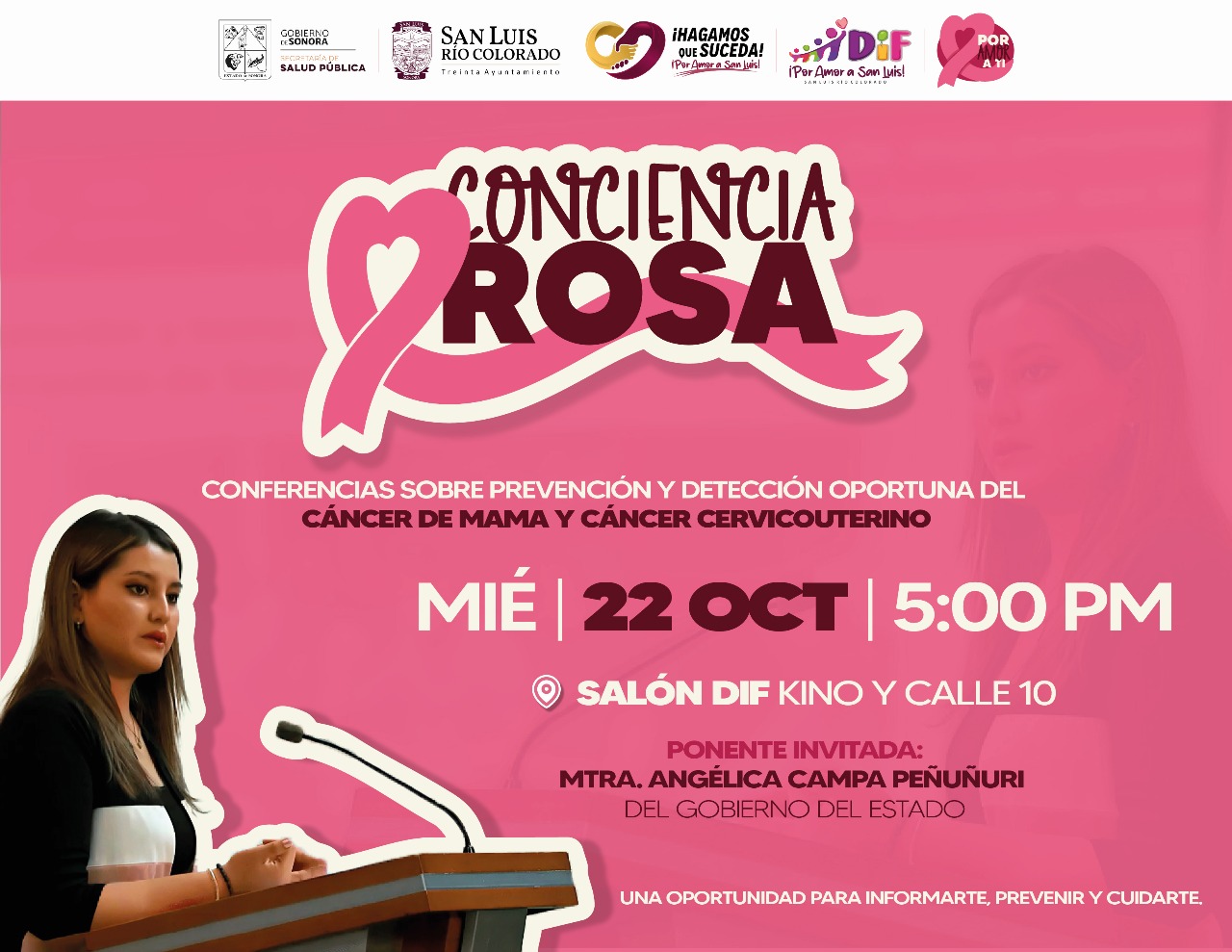 Asimismo, seÃalà que la campaÃa âPor Amor a tu Saludâ forma parte de una serie de acciones durante todo octubre para informar sobre la importancia de la autoexploraciÃn, entre las cuales destaca la conferencia sobre prevenciÃn y detecciÃn oportuna del cÃncer de mama y cÃrvico-uterino, con la participaciÃn de la Mtra. AngÃlica Campa PeÃÃÃuri, representante del Gobierno del Estado de Sonora, la cual se llevarà a cabo el miÃrcoles 22 de octubre a las 5:00 de la tarde en el SalÃn DIF (CallejÃn Kino y calle 10).