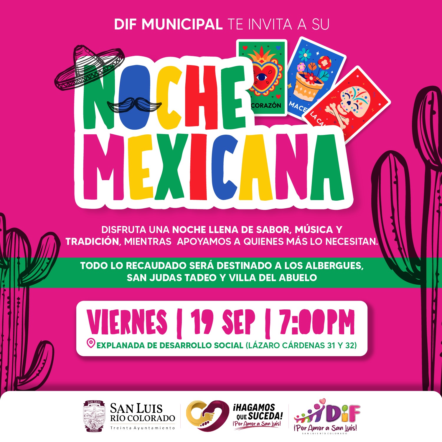 San Luis RÃo Colorado, Sonora (03 de septiembre de 2025).- Con un ambiente lleno de sabor, mÃsica y tradiciÃn, el DIF Municipal invita a la comunidad sanluisina a disfrutar de la Noche Mexicana 2025, a celebrarse el prÃximo 19 de septiembre a partir de las 7:00 de la tarde.