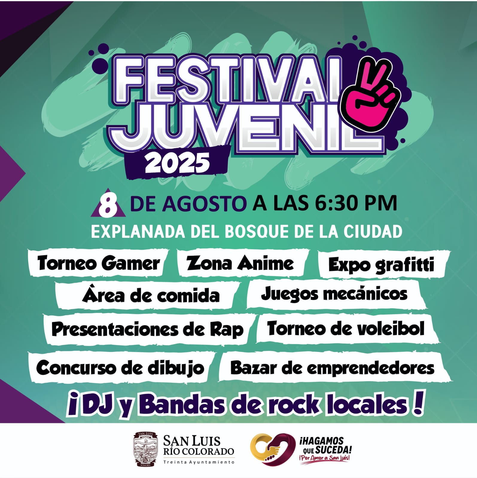 San Luis RÃo Colorado, Sonora- Para celebrar el âDÃa Internacional de la Juventudâ, el 30 Ayuntamiento de San Luis RÃo Colorado, a travÃs de la DirecciÃn de EducaciÃn Municipal y el Departamento de la Juventud, invita a la comunidad al Festival Juvenil.