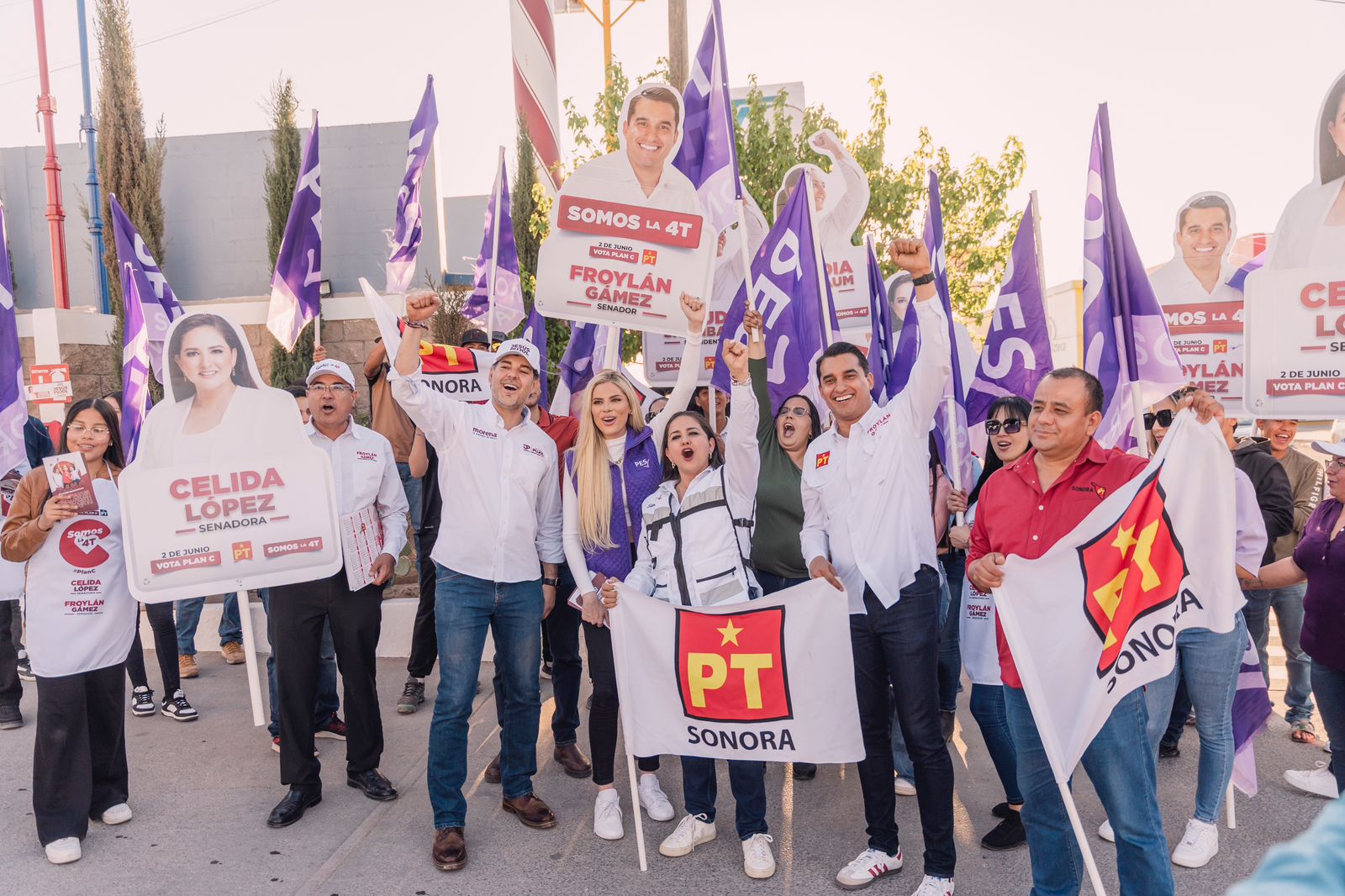 Un miÃrcoles con una agenda muy movida tuvieron la fÃrmula de la 4T por el PT, Celida LÃpez y FroylÃn GÃmez en Agua Prieta primero con medios de la regiÃn fronteriza y despuÃs una movida pega de calcas en la calle 13.