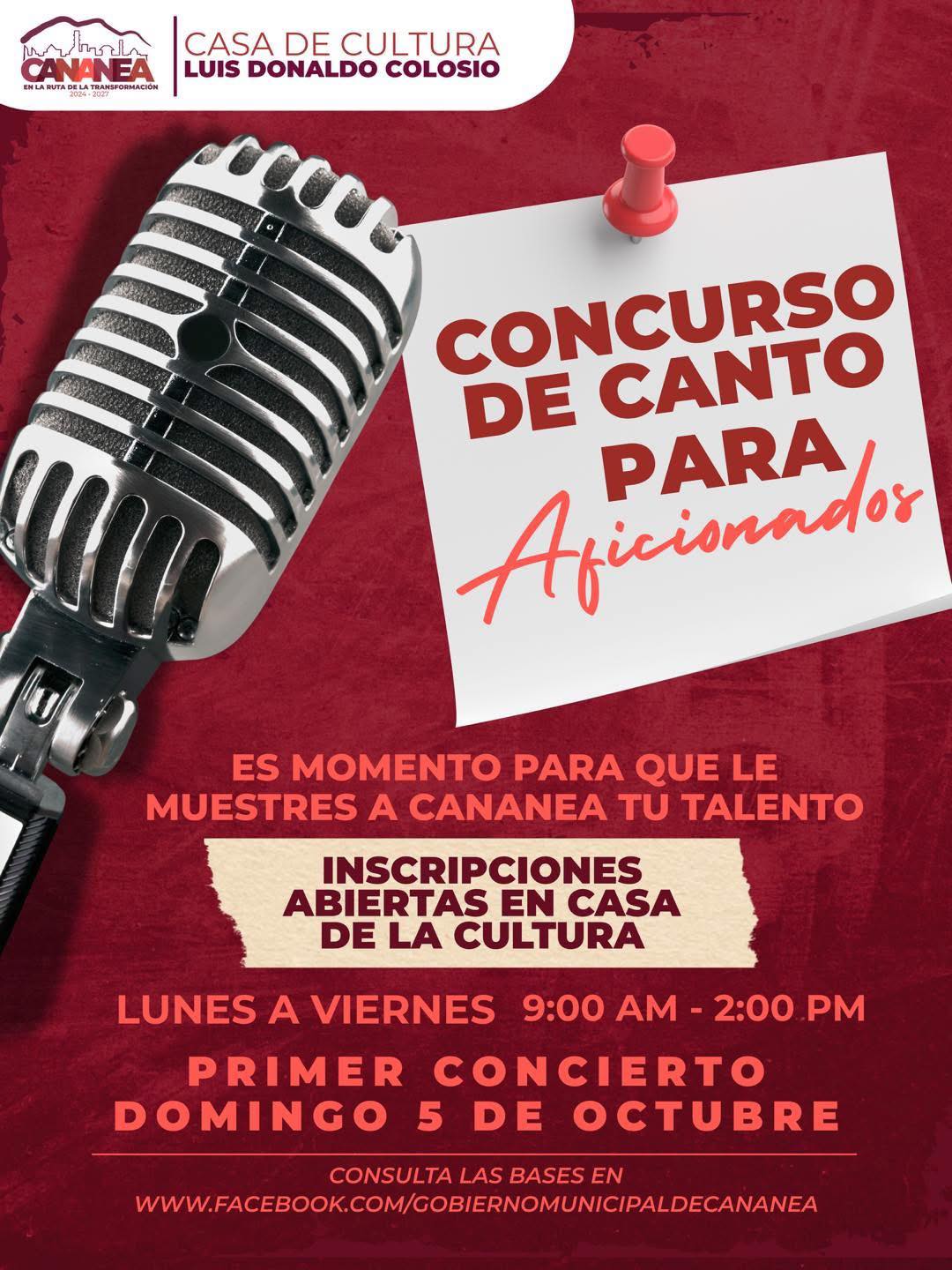 Cananea, Sonora; 2 de octubre de 2025.- La Casa de la Cultura âLuis Donaldo Colosioâ abrià la convocatoria al Concurso de Canto para Aficionados, un espacio diseÃado para que las y los cananenses puedan mostrar su talento y pasiÃn por la mÃsica.
