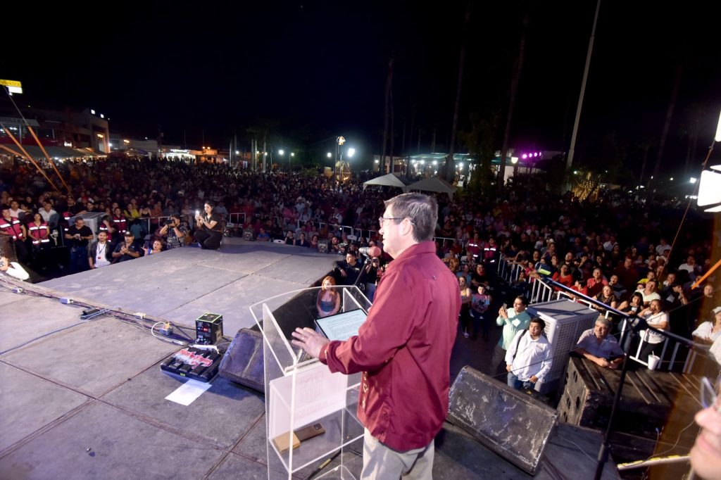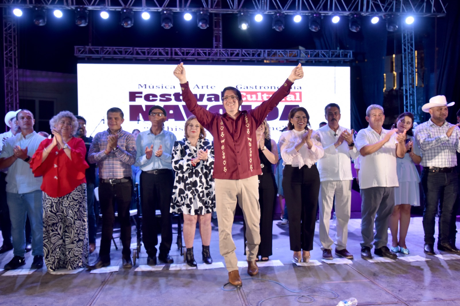 Navojoa, Sonora, 5 de octubre 2025.- La magia del arte, la cultura y la mÃsica en sus diferentes expresiones vivieron este viernes miles de asistentes al arranque del Festival Cultural Navojoa 2025 âLa historia que nos uneâ, inaugurado oficialmente por la directora del Instituto Sonorense de Cultura (ISC), Guadalupe Beatriz Aldaco Encinas, y el alcalde Jorge Alberto ElÃas Retes como anfitriÃn.