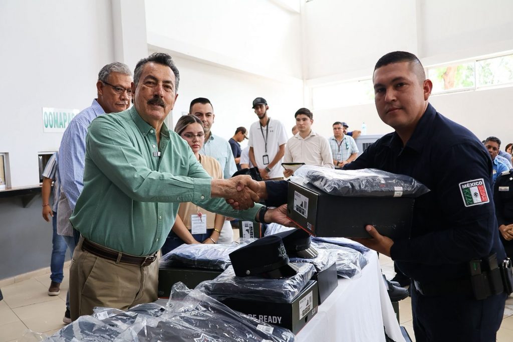 Por su parte, Claudio Cruz HernÃndez subrayà que la entrega de uniformes representa un reconocimiento al compromiso de los policÃas: