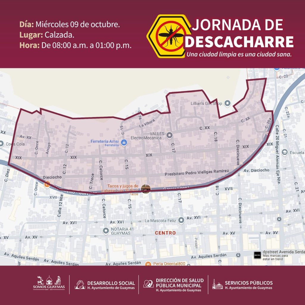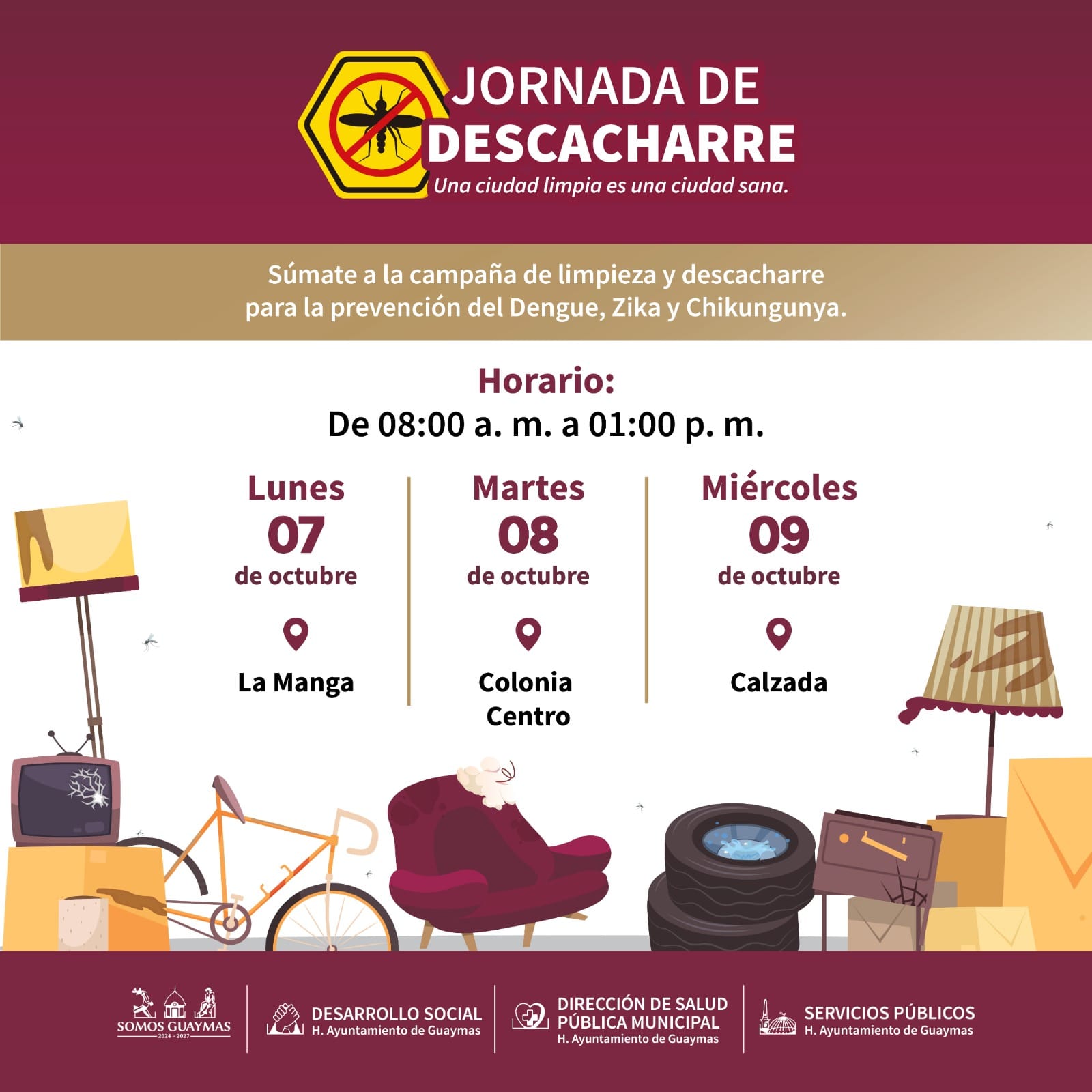 Como parte del compromiso de la doctora Karla CÃrdova GonzÃlez en la lucha contra enfermedades como el dengue, zika y chikungunya, el Ayuntamiento de Guaymas, a travÃs de Desarrollo Social, Servicios PÃblicos y Salud PÃblica Municipal, invita a la comunidad a participar en la Jornada de Descacharre.