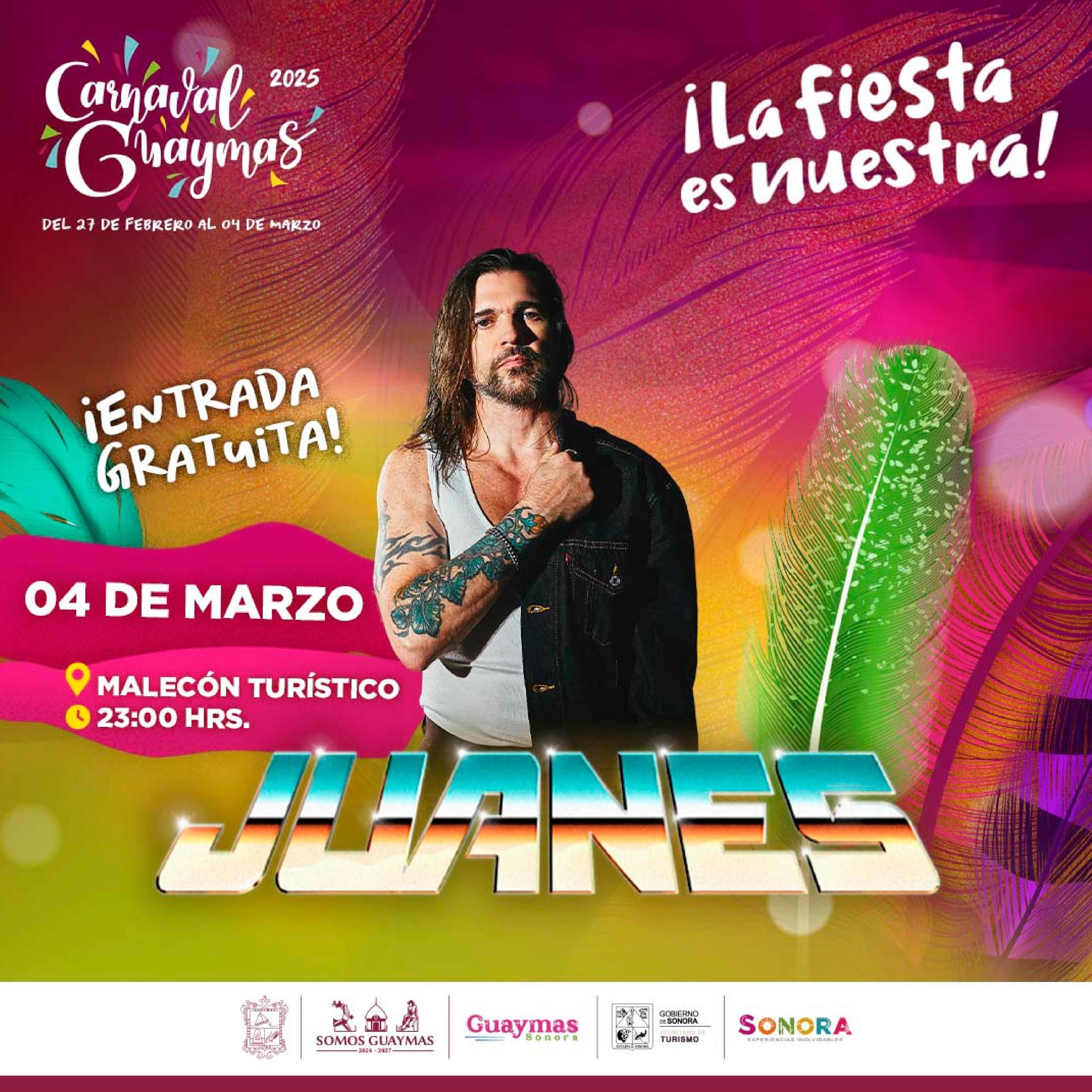 El Carnaval Guaymas 2025 llega a su gran cierre con la esperada presentaciÃn de Juanes, este martes 4 de marzo a las 23:00 horas en el MalecÃn TurÃstico. La entrada serà gratuita, lo que promete una gran convocatoria de pÃblico.