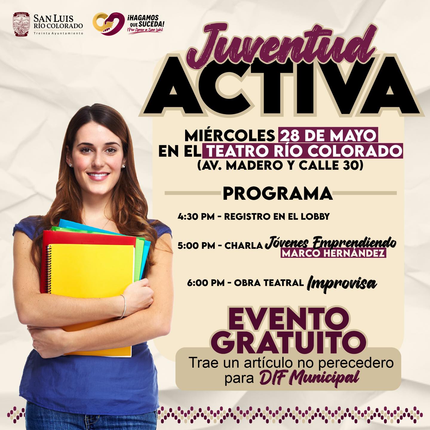 Este miÃrcoles 28 de mayo, el 30 Ayuntamiento de San Luis RÃo Colorado, a travÃs de la DirecciÃn de EducaciÃn y la DirecciÃn de Cultura Municipal, realizà el evento âJuventud Activaâ, una jornada dedicada al desarrollo personal, la creatividad y el emprendimiento juvenil.