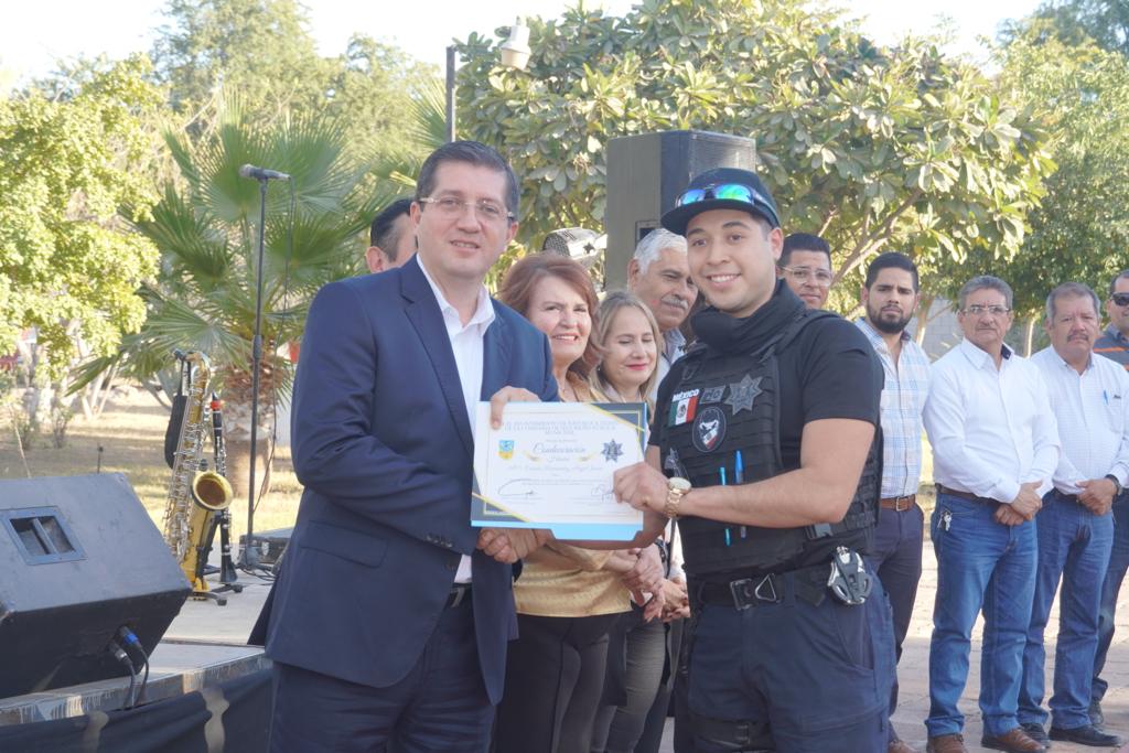 En su mensaje, el alcalde felicità a los elementos por hacer de Navojoa una de las ciudades mÃs seguras de Sonora, lo que trae consigo que las familias vivan en paz y tengan una mejor calidad de vida, ademÃs de que se favorece la llegada de nuevas inversiones.