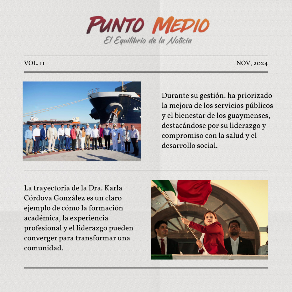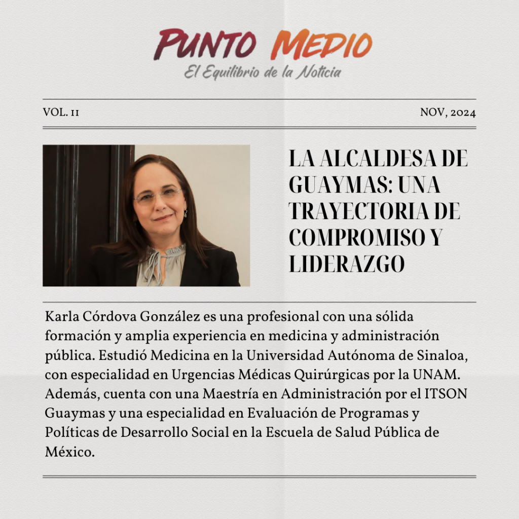 La trayectoria de Karla CÃrdova GonzÃlez es un claro ejemplo de cÃmo la formaciÃn acadÃmica, la experiencia profesional y el liderazgo pueden converger para transformar una comunidad. Su paso por diversos roles en el sector salud y la administraciÃn pÃblica le ha permitido tener una visiÃn integral de las necesidades de Guaymas, lo que la convierte en una lÃder preparada para afrontar los desafÃos del futuro y mejorar la calidad de vida de sus habitantes.