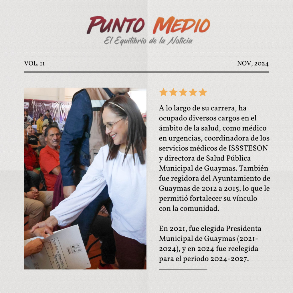 A lo largo de estos aÃos, Karla CÃrdova GonzÃlez ha sido una firme defensora de la salud y el bienestar de los guaymenses. Su trabajo en la gestiÃn de polÃticas pÃblicas, en especial aquellas dirigidas a la salud y el desarrollo social, la posicionà como una de las figuras mÃs destacadas dentro del municipio.