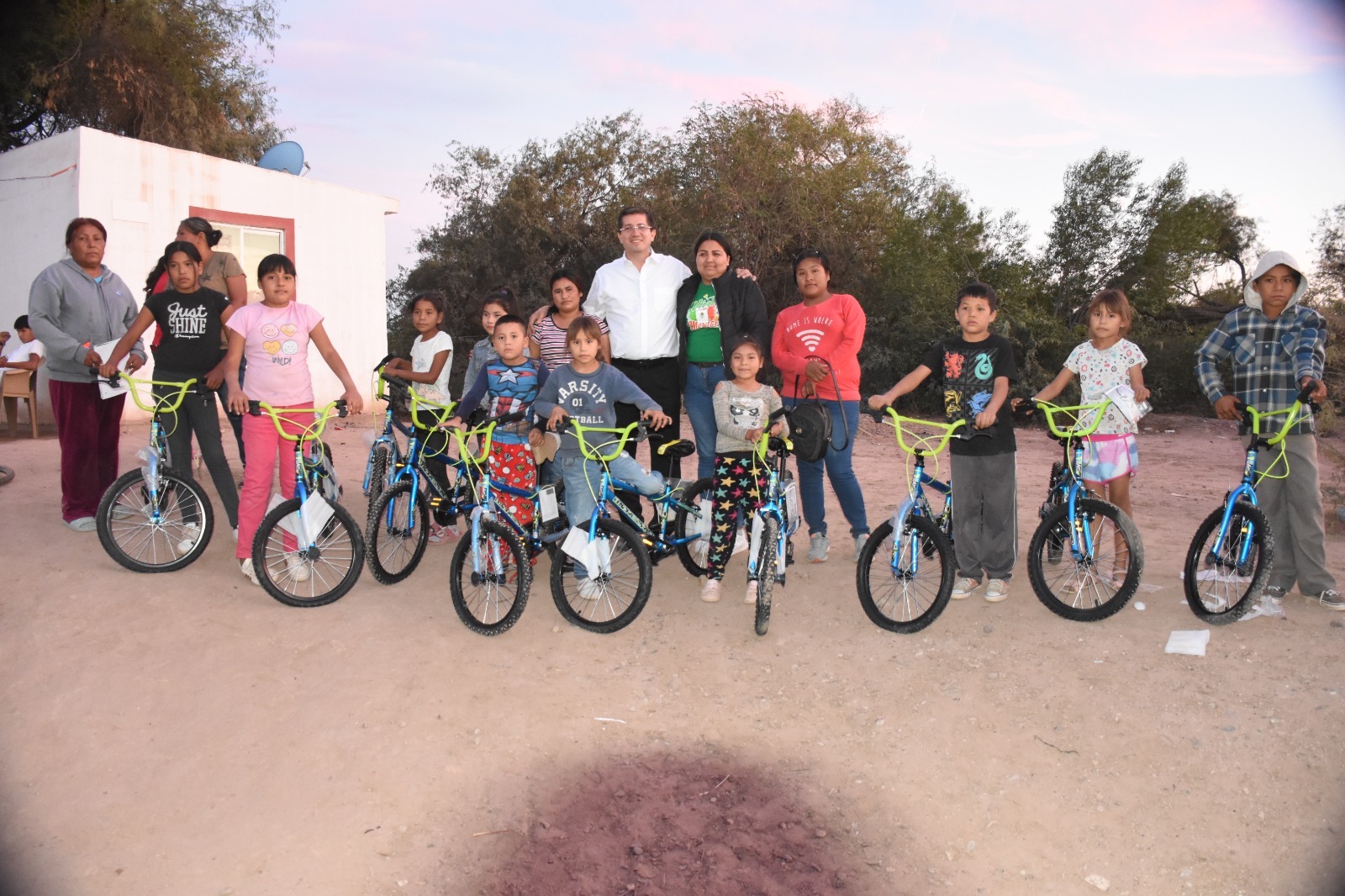 AcompaÃado por el director de Comunidades Rurales, Elpidio Osuna Campoy, el presidente municipal entregà 10 bicicletas nuevas infantiles a niÃos de El Recodo.