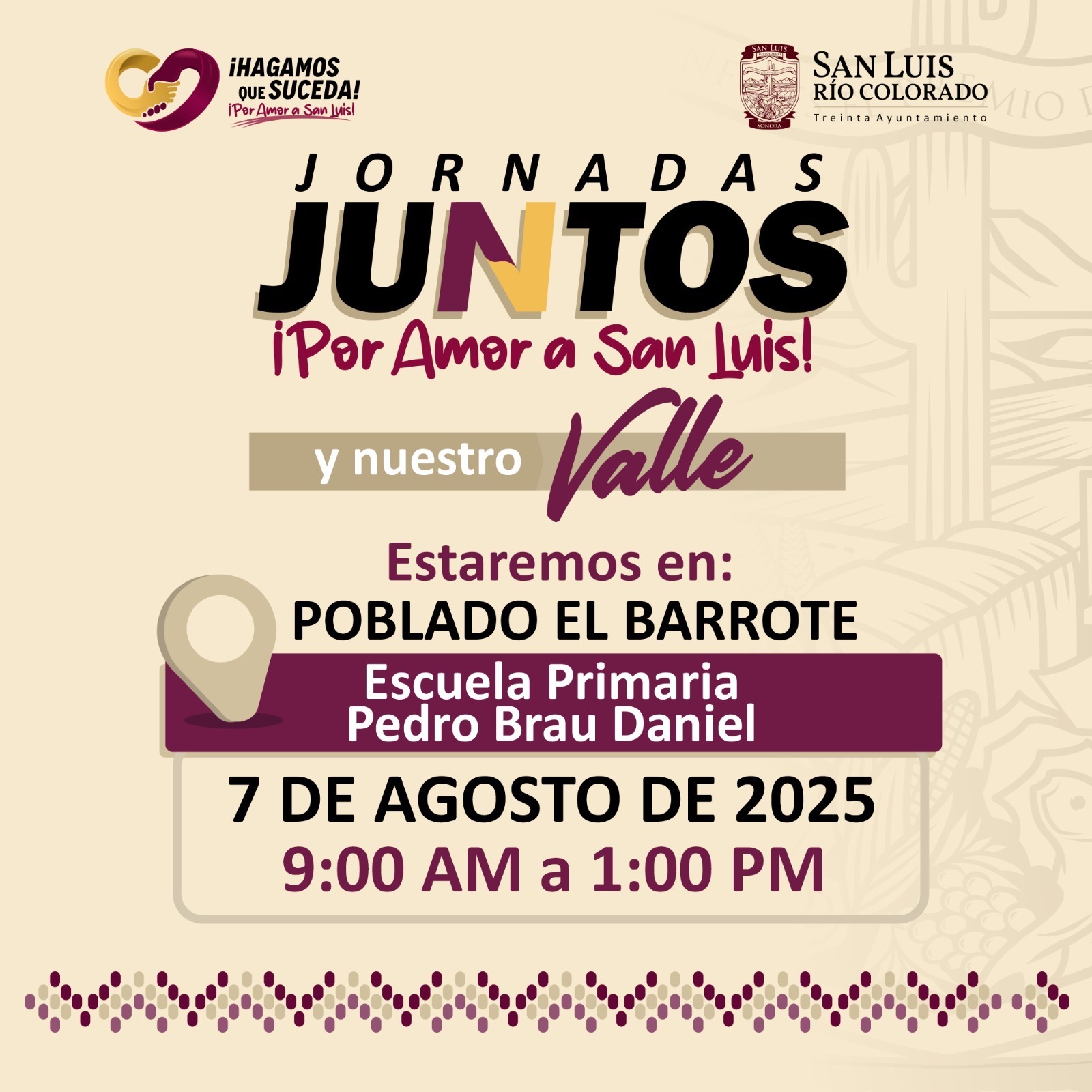 Para facilitar el acceso a servicios municipales a las comunidades del valle que, por la distancia, enfrentan dificultades para acudir a las oficinas en la ciudad, este prÃximo jueves 07 de agosto el 30 Ayuntamiento llevarà las Jornadas Comunitarias âJuntos por Amor a San Luis y a su Valleâ al poblado El Barrote.