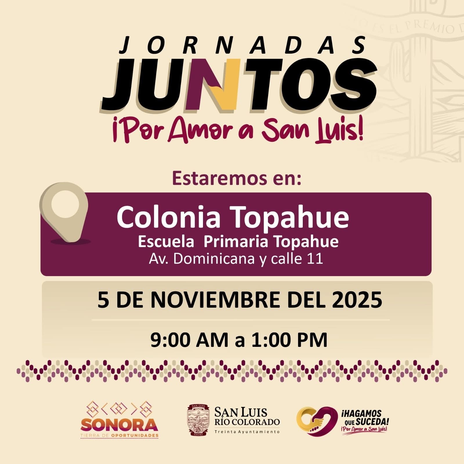 San Luis RÃo Colorado, Sonora (Noviembre 04 de 2025).- Con el firme compromiso de acercar los servicios municipales y estatales a las familias sanluisinas, el 30 Ayuntamiento llevarà a cabo una nueva ediciÃn de las jornadas comunitarias âPor Amor a San Luisâ este miÃrcoles 05 de noviembre en la colonia Topahue.