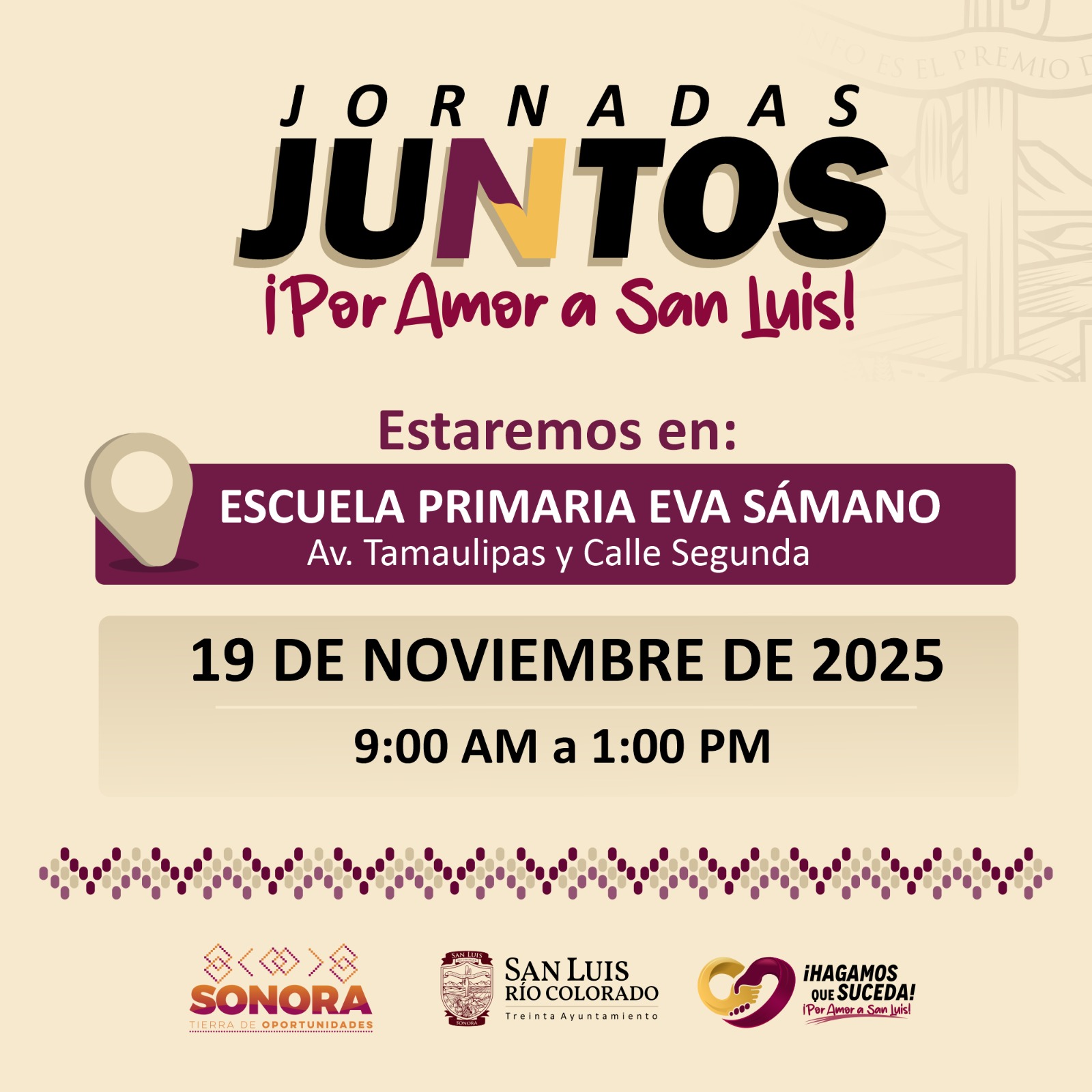 San Luis RÃo Colorado, Sonora (18 de noviembre de 2025).- Con el firme compromiso de acercar los servicios municipales y estatales a las familias sanluisinas, el 30 Ayuntamiento llevarà a cabo una nueva ediciÃn de las jornadas comunitarias âPor Amor a San Luisâ este miÃrcoles 19 de noviembre en las colonias Ruiz Cortinez y Sonora.