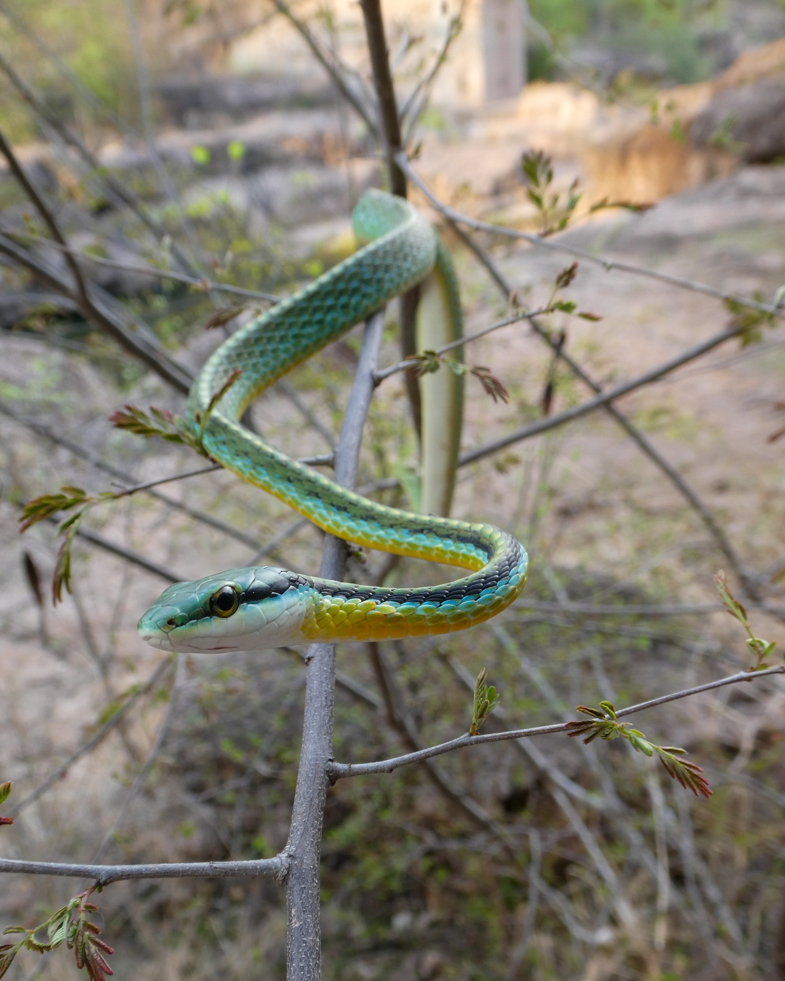 - Serpientes no venenosas (como chicoteras o alicantes)