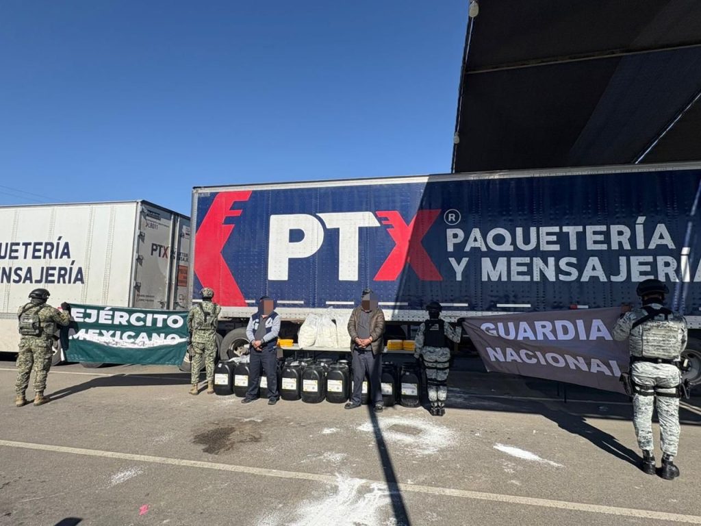 Hermosillo, Sonora; 21 de noviembre de 2025.- Como resultado de la estrategia coordinada entre las instituciones que integran la Mesa Estatal de Seguridad, encabezada por el gobernador Alfonso Durazo MontaÃo, se efectuà el aseguramiento de un tractocamiÃn con alrededor de 300 kilogramos de metanfetamina y la detenciÃn de dos personas, durante una revisiÃn en el Puesto Militar de Seguridad âCucapahâ en San Luis RÃo Colorado.