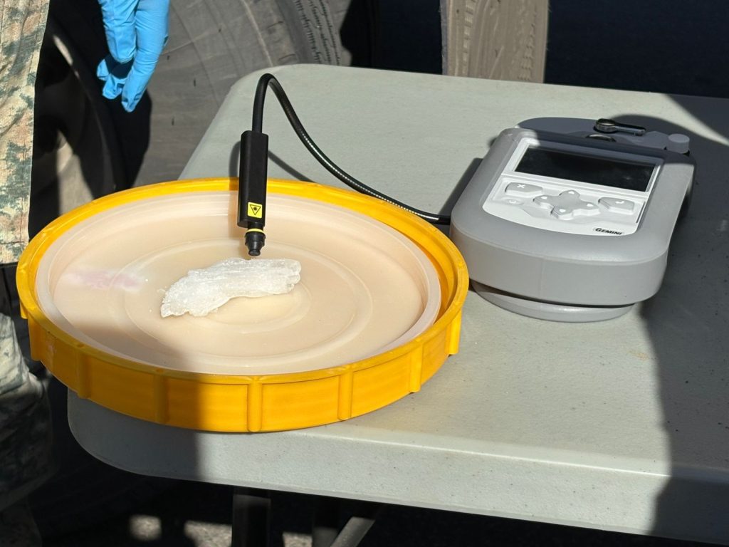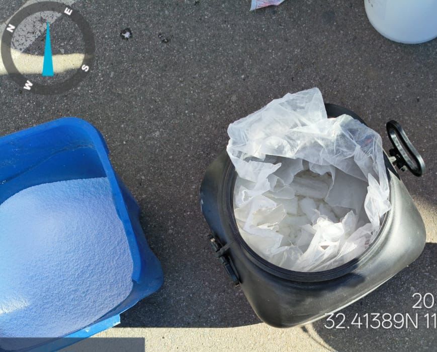 Elementos de la Guardia Nacional y del EjÃrcito Mexicano llevaron a cabo la inspecciÃn de un tractocamiÃn marca freightliner, color blanco que circulaba de este a oeste con direcciÃn a San Luis RÃo Colorado, mismo que al ser inspeccionado por medio de Rayos Gama se detectà una inconsistencia en la carga de la caja seca, por lo que se procedià a la verificaciÃn minuciosa, localizando en el interior 18 tambos color negro con la leyenda Dynclor Granular.