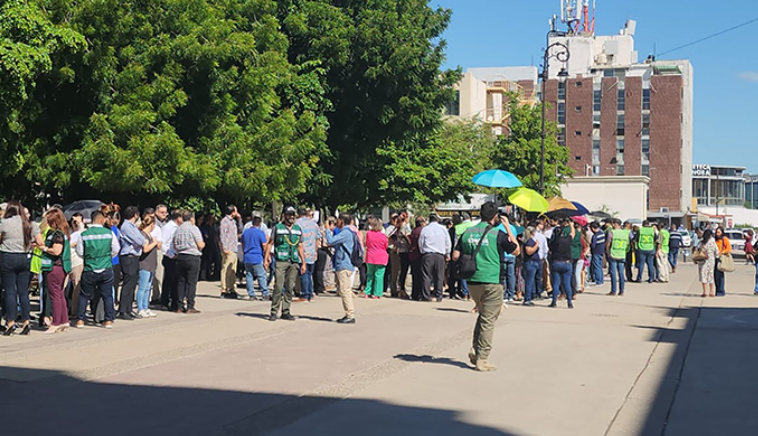 En Palacio de Gobierno, 200 personas de cinco dependencias fueron evacuadas en un tiempo rÃcord de un minuto, mientras que entre seis mil y ocho mil empleados del Centro de Gobierno completaron la evacuaciÃn en dos minutos.