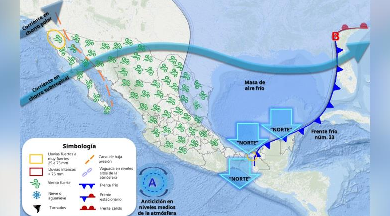 Se anticipa que un primer frente frÃo llegarà al noroeste del paÃs, acompaÃado de un sistema ciclÃnico, lo que provocarà un descenso en las temperaturas, rachas de viento y la caÃda de nieve y aguanieve en las zonas serranas. Este frente serà reforzado por otro frente frÃo que se prevà para el viernes 14 de marzo.