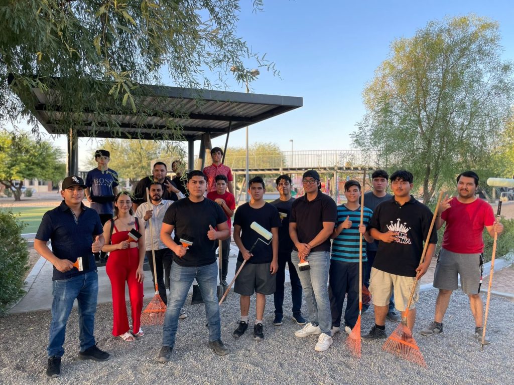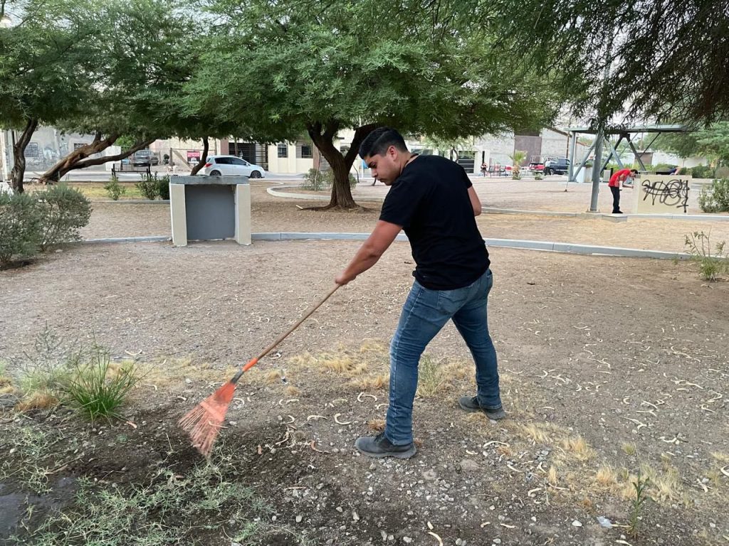 El Ayuntamiento de San Luis RÃo Colorado, por medio de la DirecciÃn de EducaciÃn Municipal y el Departamento de Juventud, llevà a cabo una jornada de limpieza y rehabilitaciÃn en el parque Josà InÃs Palafox.