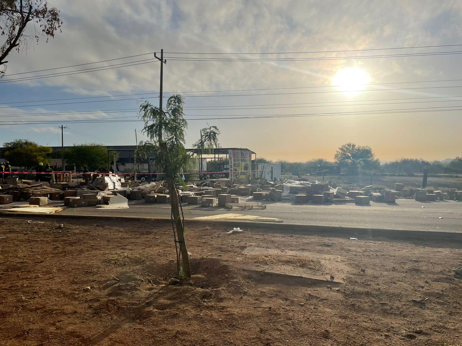 Hermosillo, Sonora; a 25 de marzo del 2024.- Una tragedia sacudià las carreteras al norte de Hermosillo cuando un tractocamiÃn, cargado con piezas de cerÃmica, se volcà en el bulevar Enrique MazÃn LÃpez, cobrando la vida del conductor.