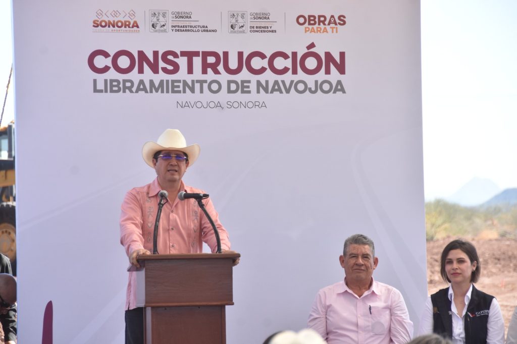 Navojoa, Sonora, 2 de marzo 2026.- El gobernador Alfonso Durazo MontaÃo, y el alcalde Jorge Alberto ElÃas Retes, dieron este lunes el banderazo de inicio de construcciÃn al nuevo Libramiento de Navojoa, una obra dentro del Plan Sonora que tendrà una inversiÃn de 1,500 millones de pesos y longitud de 22.7 kilÃmetros, convirtiÃndose en un factor de detonante econÃmico, turÃstico y conectividad para la regiÃn sur y entidad.