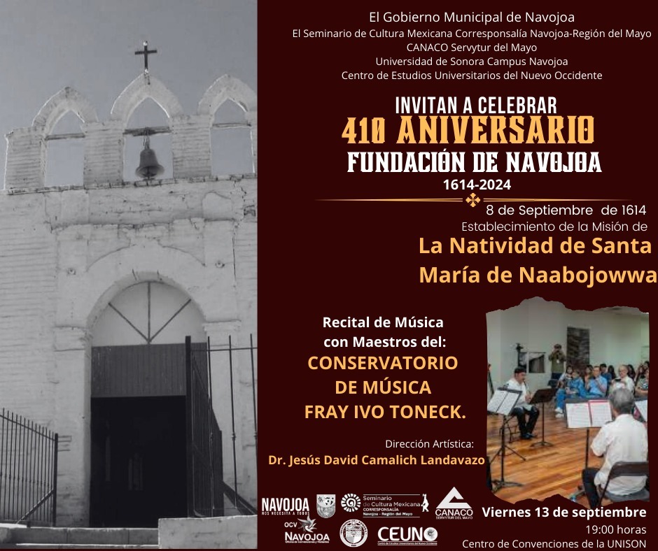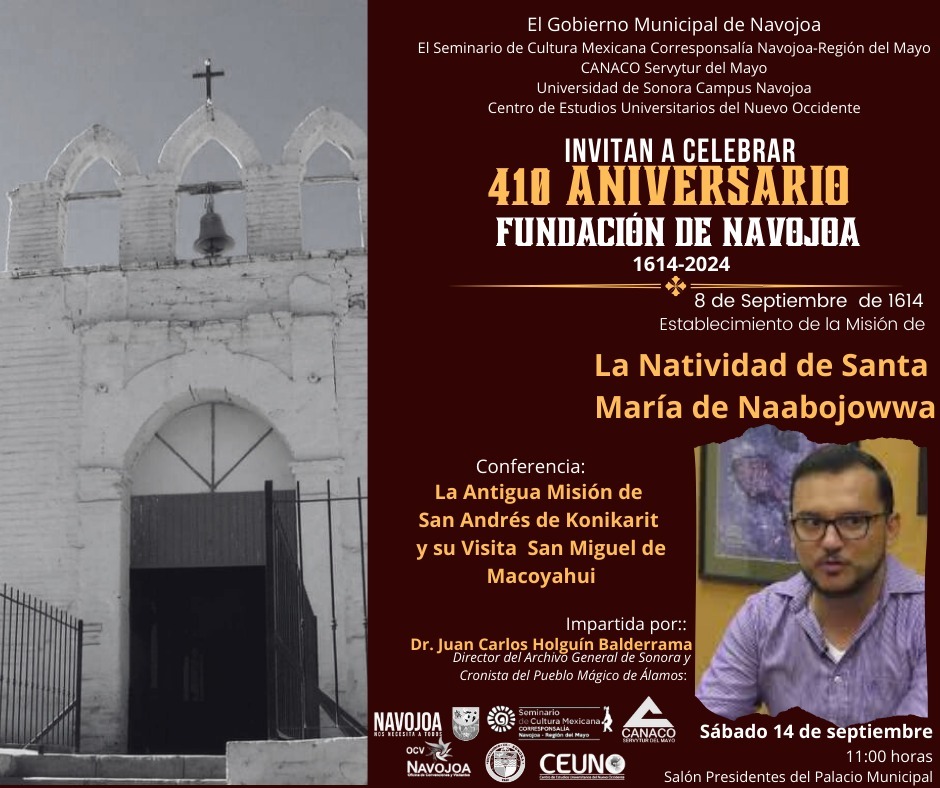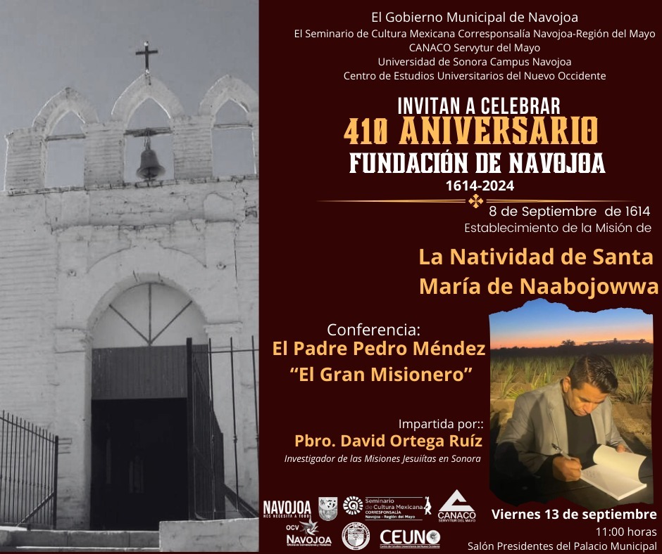 Navojoa, Sonora â El Gobierno Municipal de Navojoa, en colaboraciÃn con el Seminario de Cultura Mexicana CorresponsalÃa Navojoa-RegiÃn del Mayo, la CANACO Servytur del Mayo, la Universidad de Sonora Campus Navojoa y el Centro de Estudios Universitarios del Nuevo Occidente, ha organizado un ciclo de conferencias para conmemorar los 410 aÃos de la fundaciÃn de Navojoa. El evento busca resaltar la riqueza cultural de la regiÃn y las valiosas aportaciones de las Misiones Jesuitas en el desarrollo del Valle del Mayo.
