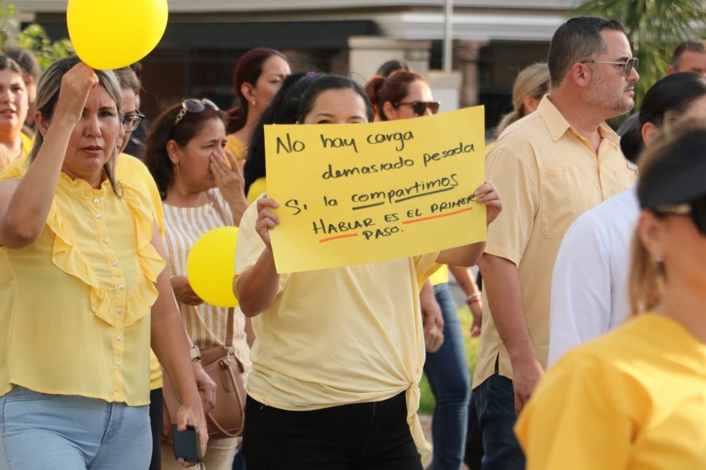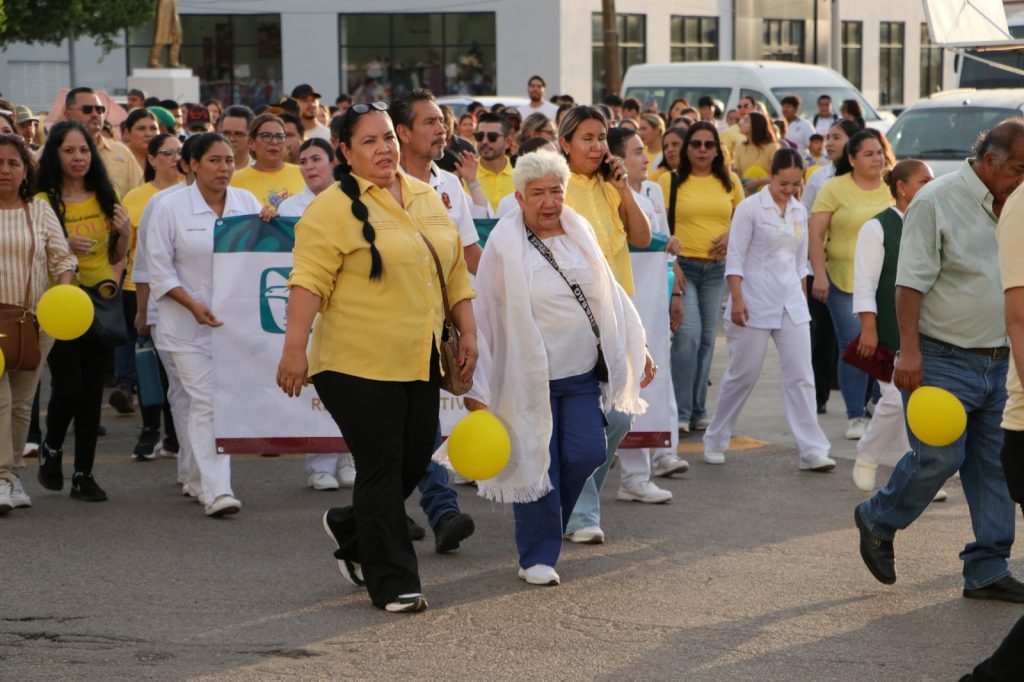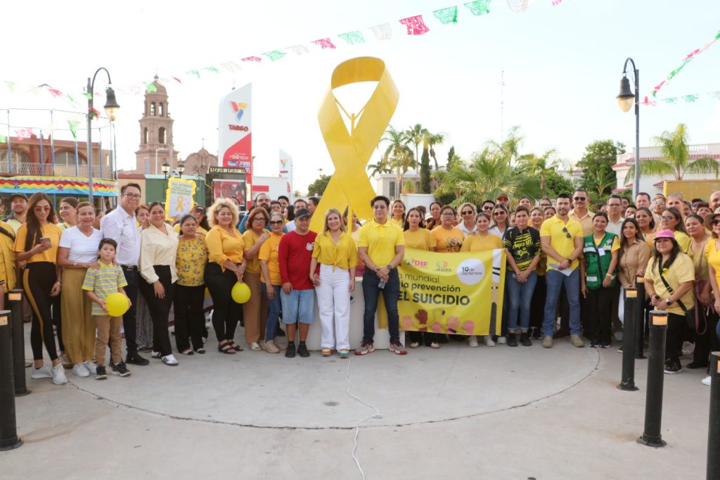 La caminata, en la que participaron decenas de ciudadanos vestidos de amarillo, recorrià desde la plaza Santa Fe Spring hasta la plaza 5 de Mayo. Durante el acto, la presidenta del DIF, Luz Argel Gaxiola de ElÃas, destacà que un abrazo, una plÃtica sin juicios y la escucha activa pueden transformar vidas y ayudar a prevenir tragedias.