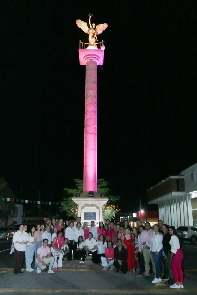 Navojoa, Sonora, 2 de octubre 2024.- Iluminados de rosa, el color de identidad de la mujer, la vida y la esperanza, quedaron este dÃa el Palacio y los monumentos del Ãngel de la Independencia y los Tres Picos, al iniciar el gobierno, que preside el alcalde Jorge Alberto ElÃas Retes, las actividades de celebraciÃn del mes de la lucha contra el cÃncer de mama.
