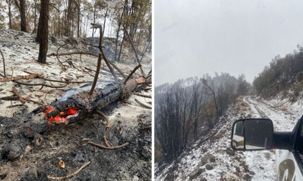Una nevada registrada la tarde del lunes en la sierra de NÃcori Chico trajo alivio parcial a los brigadistas que combaten desde hace diez dÃas un incendio forestal en esa zona de Sonora.