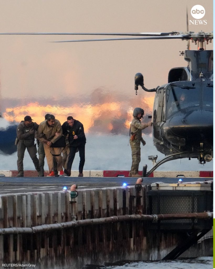 ImÃgenes captadas por un helicÃptero de noticias mostraron a Maduro saliendo del Centro de DetenciÃn Metropolitano de Brooklyn, donde permanecÃa recluido desde su llegada a territorio estadounidense el sÃbado por la noche, rumbo a la corte federal, bajo un fuerte dispositivo de seguridad.