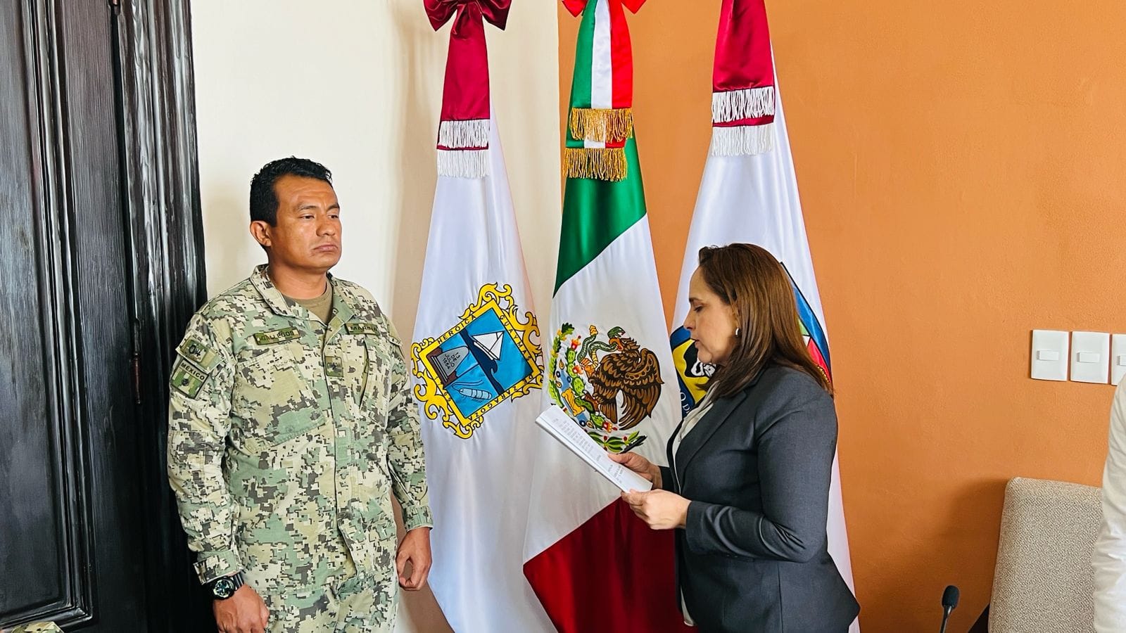 La alcaldesa tomà protesta al nuevo Comisario de Seguridad PÃblica en presencia del cuerpo de regidores. Cruz Gallegos, quien se incorporà al servicio activo de la Armada de MÃxico en el aÃo 2000, es egresado como Ingeniero TopÃgrafo de la Heroica Escuela Naval Militar, con especialidad en Mando Naval. A lo largo de su carrera, ha realizado mÃltiples cursos en tÃcnicas de supervisiÃn, adiestramiento, inteligencia tÃctica y antiterrorismo, ademÃs de haber sido condecorado en varias ocasiones por su destacada labor en diferentes comisiones.