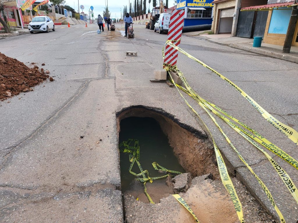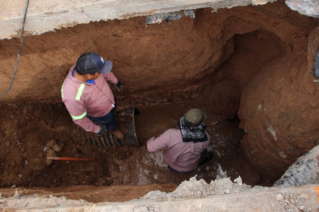 Esta invervenciÃn se realiza, a travÃs del Organismo Operador Municipal de Agua Protable, Alcantarillado y Saneamiento (Oomapas) de Agua Prieta, despuÃs del colapso de una tuberÃa de drenaje sanitario, como consecuencia del desgaste acumulado durante aÃos, sin ser renovada.