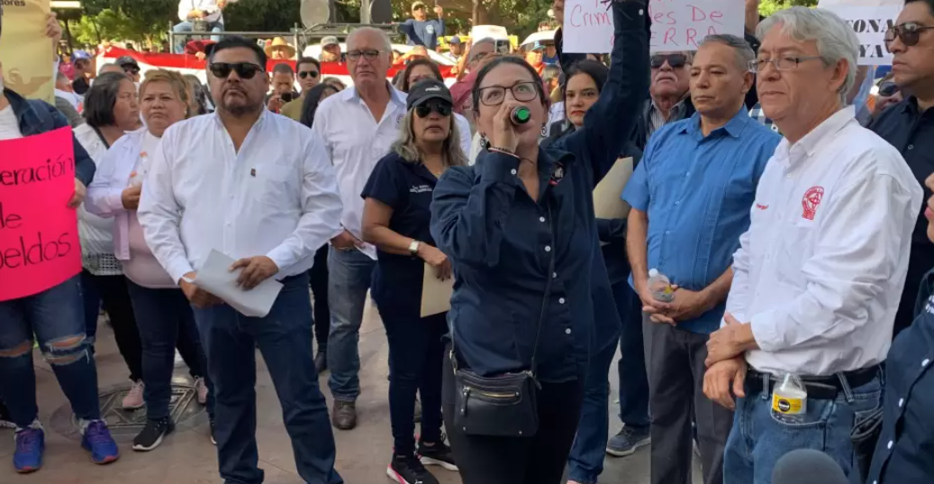 Hermosillo; Sonora; a 14 de noviembre del 2023.- Integrantes de diferentes organizaciones sindicales y estudiantes universitarios, se manifestaron este martes frente a palacio de gobierno para exigir mejores condiciones de trabajo.
