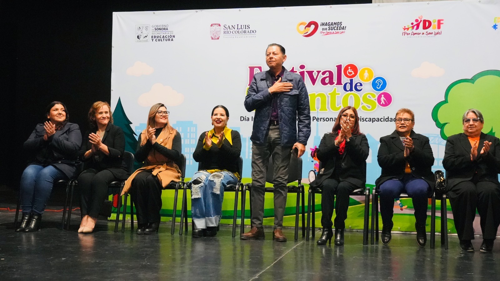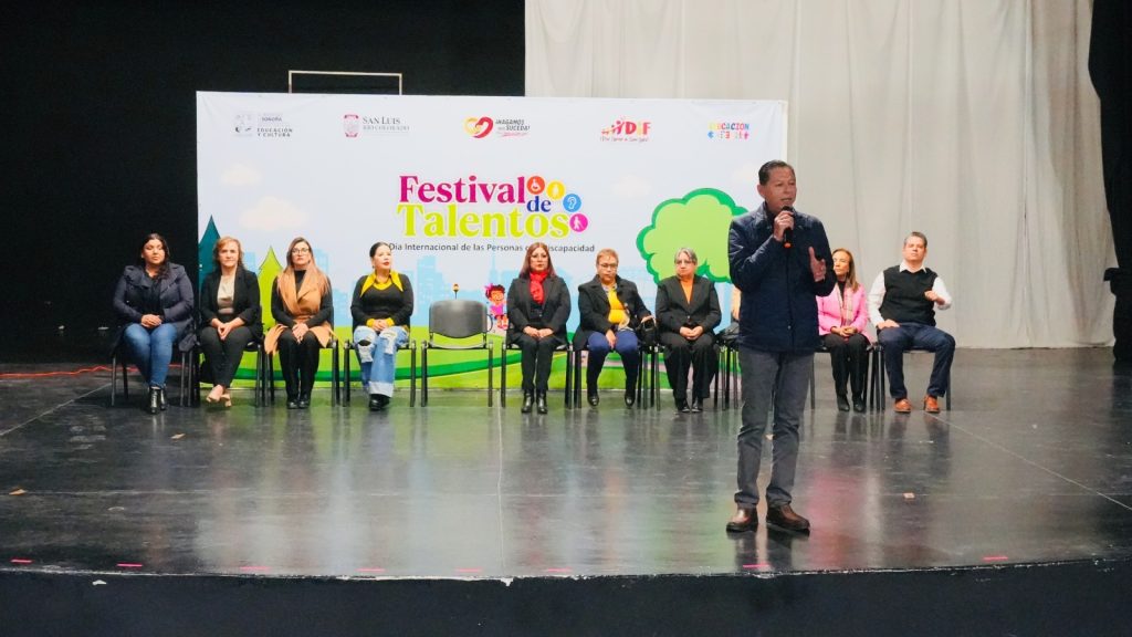 San Luis RÃo Colorado, Sonora; Diciembre 03 de 2024.- Para conmemorar el DÃa Internacional de las personas con discapacidad, esta maÃana el alcalde CÃsar IvÃn Sandoval GÃmez acompaÃado de la presidenta de DIF Municipal, Antonia Montenegro AragÃn participaron en el Festival de Talentos organizado por la SupervisiÃn Zona 07 de EducaciÃn Especial.