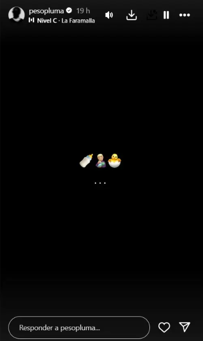 Aunque Peso Pluma, de 25 aÃos, no ha confirmado oficialmente que està esperando un bebÃ, muchos de sus seguidores y medios han comenzado a especular que podrÃa estar anunciando que serà papÃ, especialmente debido a su reciente relaciÃn con la influencer Diana RosalÃa Esparragoza. Sin embargo, algunos fans tambiÃn sugieren que la imagen podrÃa estar relacionada con algÃn nuevo proyecto musical, como una posible canciÃn o una nueva versiÃn de su Ãxito âLa bebÃâ de Yng Lvcas.