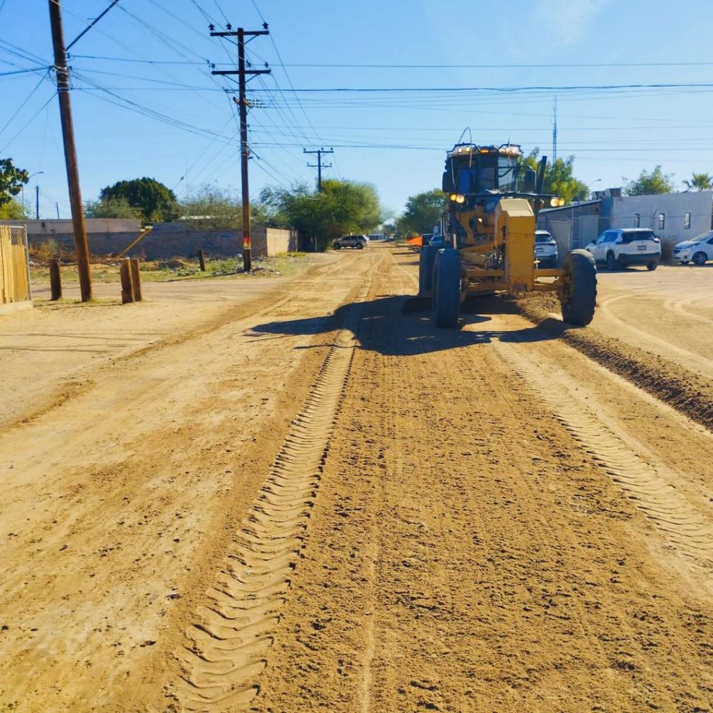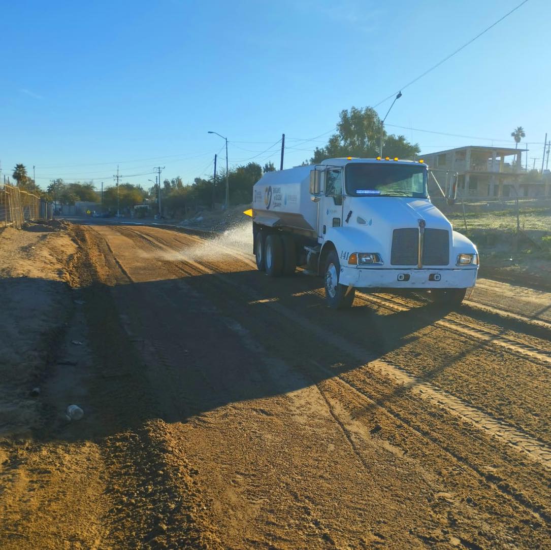 Como parte de las acciones para mejorar la movilidad y las condiciones de vida en las colonias, el Ayuntamiento de San Luis RÃo Colorado avanza con trabajos del Plan Cisterna, mediante labores de raspado y regado de calles en distintos puntos de la ciudad.