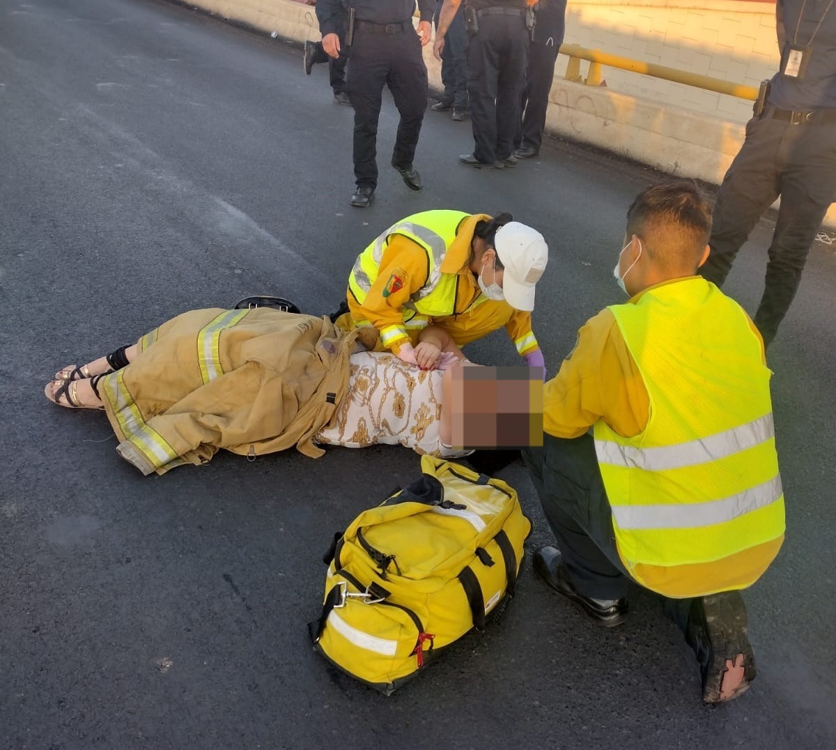 Ya bajo custodia del personal policiaco, la mujer fue puesta a disposiciÃn del Departamento de Bomberos para ser trasladada al Hospital IMSS Bienestar y recibir la atenciÃn mÃdica correspondiente.