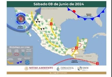 Para el sÃbado 8 y domingo 9 de junio, se anticipa la persistencia de canales de baja presiÃn sobre el noroeste y norte del paÃs, lo que provocarà vientos fuertes, chubascos y lluvias, acompaÃados de actividad elÃctrica y potencial granizo en algunas Ãreas. En Sonora, se esperan lluvias aisladas y vientos con rÃfagas de 40 a 60 kilÃmetros por hora, con la posibilidad de tolvaneras. A pesar de las precipitaciones, se prevà un calor extremo con temperaturas mÃximas por encima de los 45ÂC en la mayorÃa del estado.