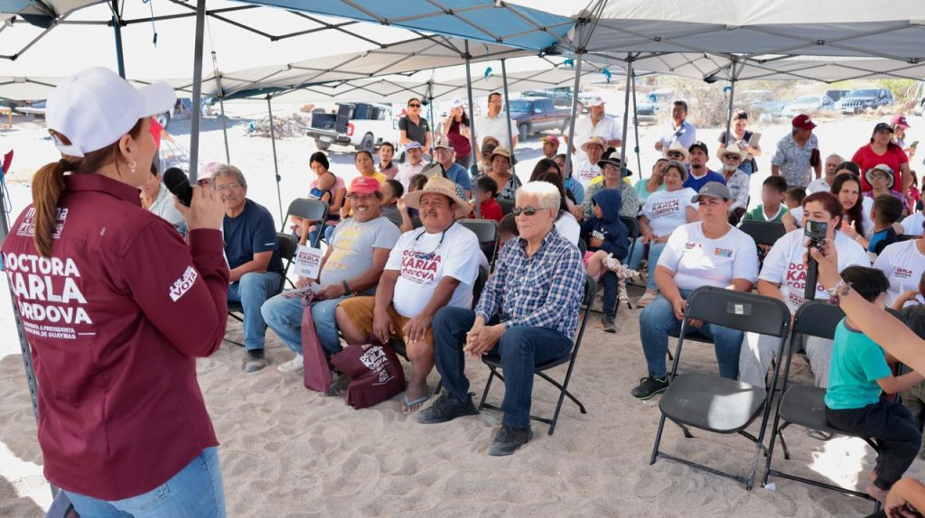 Guaymas, Sonora, 14 de mayo de 2024. Residentes de La Manga 1 dieron un gran recibimiento a la doctora Karla CÃrdova GonzÃlez, candidata a la presidencia municipal, quien presentà los proyectos de trabajo que beneficiarÃn a todas las familias.