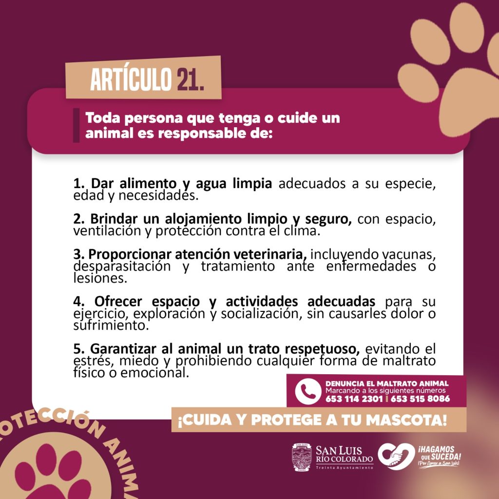 San Luis RÃo Colorado, Sonora (Noviembre 11 de 2025).- En coordinaciÃn con el Gobierno del Estado de Sonora, el 30 Ayuntamiento de San Luis RÃo Colorado dio a conocer el nuevo Reglamento de Bienestar Animal, que establece derechos, obligaciones y sanciones orientadas a promover una cultura de respeto y cuidado hacia todas las especies.