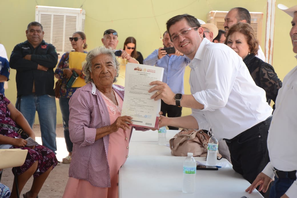 Navojoa, Sonora – Un primer paquete de 142 tÃtulos de propiedad de solares urbanos entregaron este sÃbado autoridades estatales, del RAN y SEDATU, junto al alcalde Jorge Alberto ElÃas Retes, a habitantes del poblado Santa MarÃa del BuÃraje, en la comisarÃa de FundiciÃn.