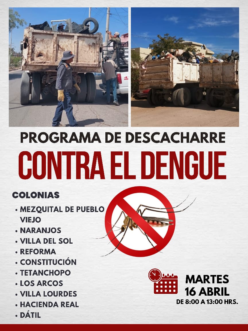 ððColonias en las que se implementarà el Programa de Descacharre contra el Dengue, este martes 16 de abril, a partir de las 8:00 de la maÃana.